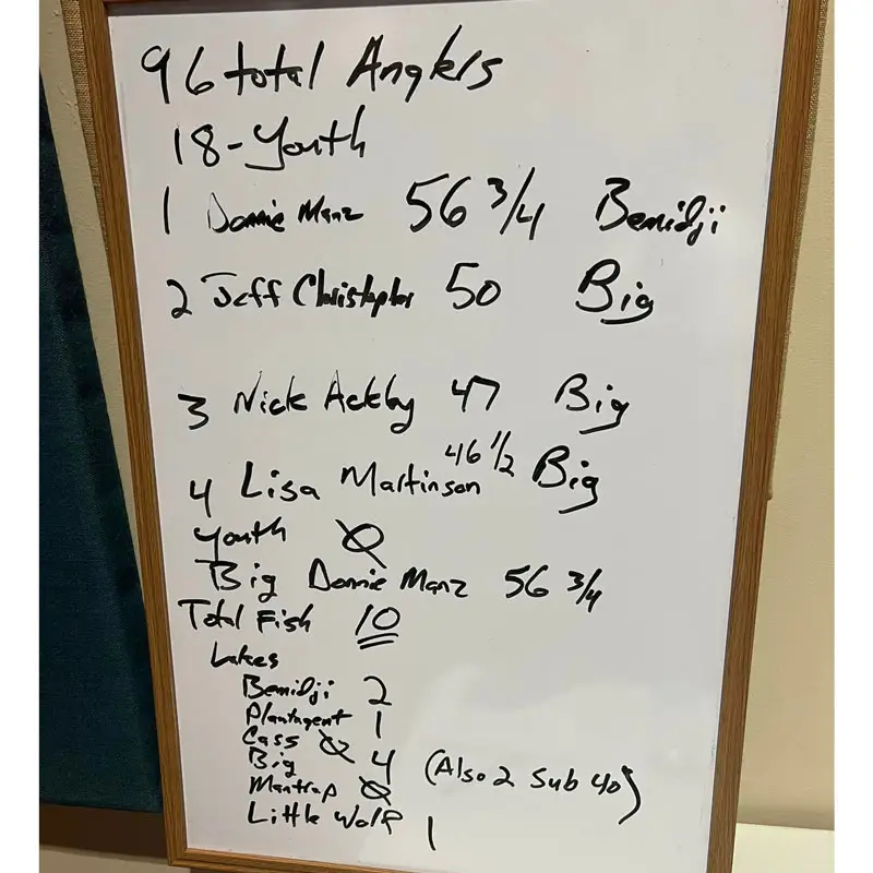 We gave away a youth MN lifetime fishing license, made donations to BSU Aquatics Scholarship, Bemidji Youth Hockey (On behalf of Brian Truax,) and the Boy Scouts as a result from the tournament.